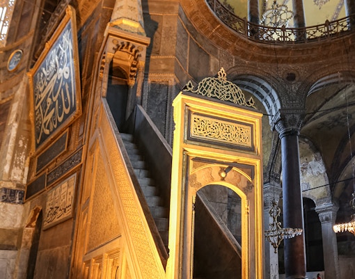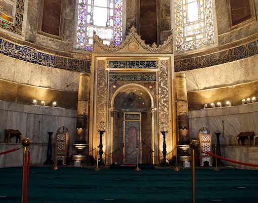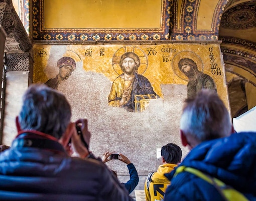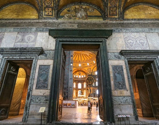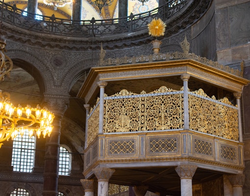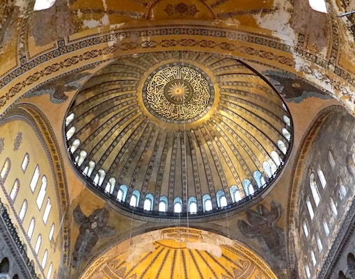 Le Grand Dôme à l'intérieur de Sainte-Sophie est une merveille d'ingénierie de son temps. Sa taille et ses ornements complexes vous laisseront certainement bouche bée. Levez les yeux et admirez les magnifiques mosaïques byzantines qui ornent sa surface, présentant des scènes parties de la vie de Jésus, de la Vierge Marie et de divers saints.