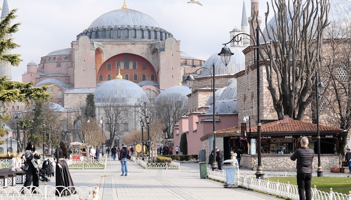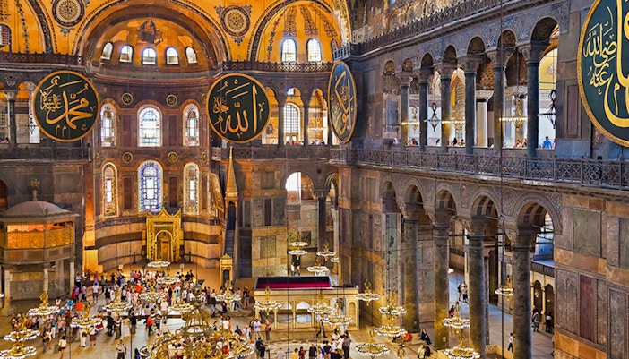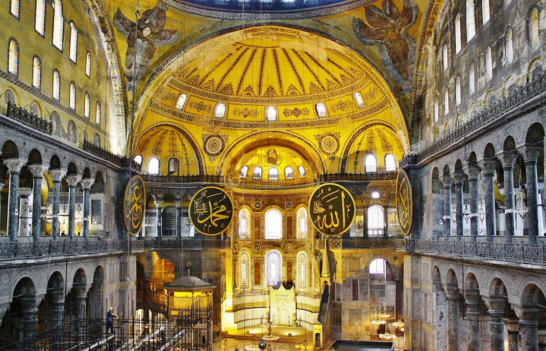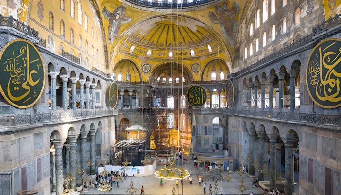 - influenza islamica: Dopo la conquista ottomana nel 1453, alla moschea furono aggiunti i minareti, il mihrab (nicchia di preghiera) e il minbar (pulpito). Queste caratteristiche evidenziano l'importanza di Santa Sofia come luogo di culto per i musulmani.